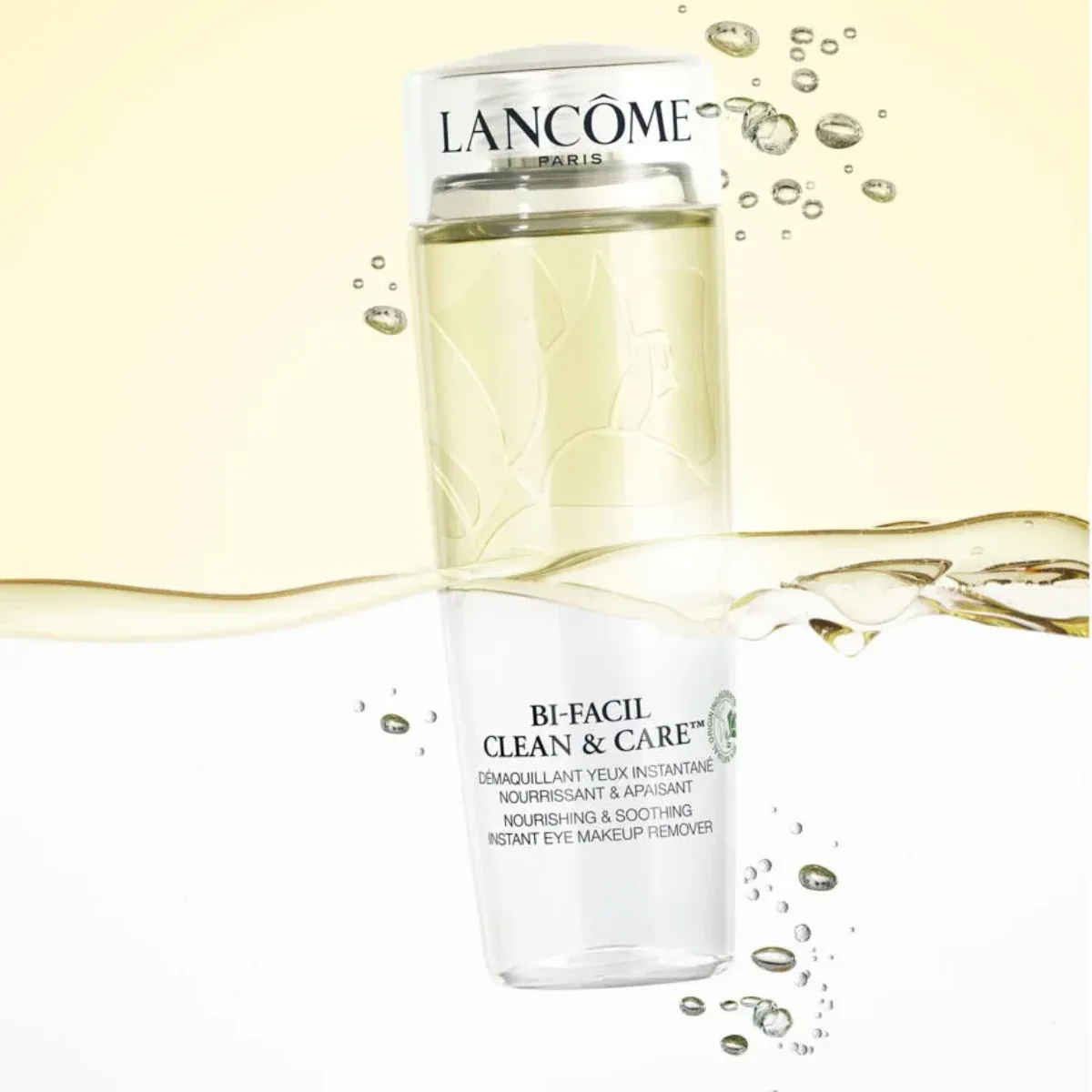 Elaborada con aceites de jojoba y almendras, agua de rosas francesas y aminoácidos, la fórmula elimina instantáneamente el maquillaje de los ojos a prueba de agua. La fórmula deja una sensación de rostro fresco sin residuos de maquillaje de la noche anterior. Suaviza el área de los ojos para que la piel se sienta nutrida y las pestañas luzcan fortificadas y revitalizadas. Nuestra tecnología patentada utiliza un sistema de dos partes para eliminar el maquillaje. La fase oleosa con aceites de almendras y jojoba retira el maquillaje de los ojos, mientras que la fase acuosa con agua de rosas francesas suaviza y limpia la piel. Esta fórmula suave es apta para todo tipo de piel, incluida la piel sensible. Bi-Facil Clean & Care no reseca y no deja la piel con una sensación grasosa o pegajosa.