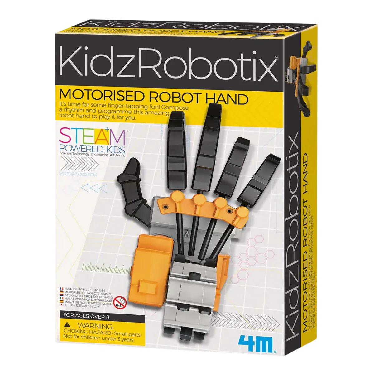 Fabrica un brazo robótico articulado ensamblando los elementos suministrados. Añade agua en el sistema hidráulico y controla los movimientos del brazo en todas direcciones con las 6 palancas. Tiene capacidad para manipular objetos de hasta 50 g con sus pinzas o ventosa. No requiere pilas; folleto ilustrado en color, con diagrama de montaje y actividades lúdicas. A partir de los 10 años.