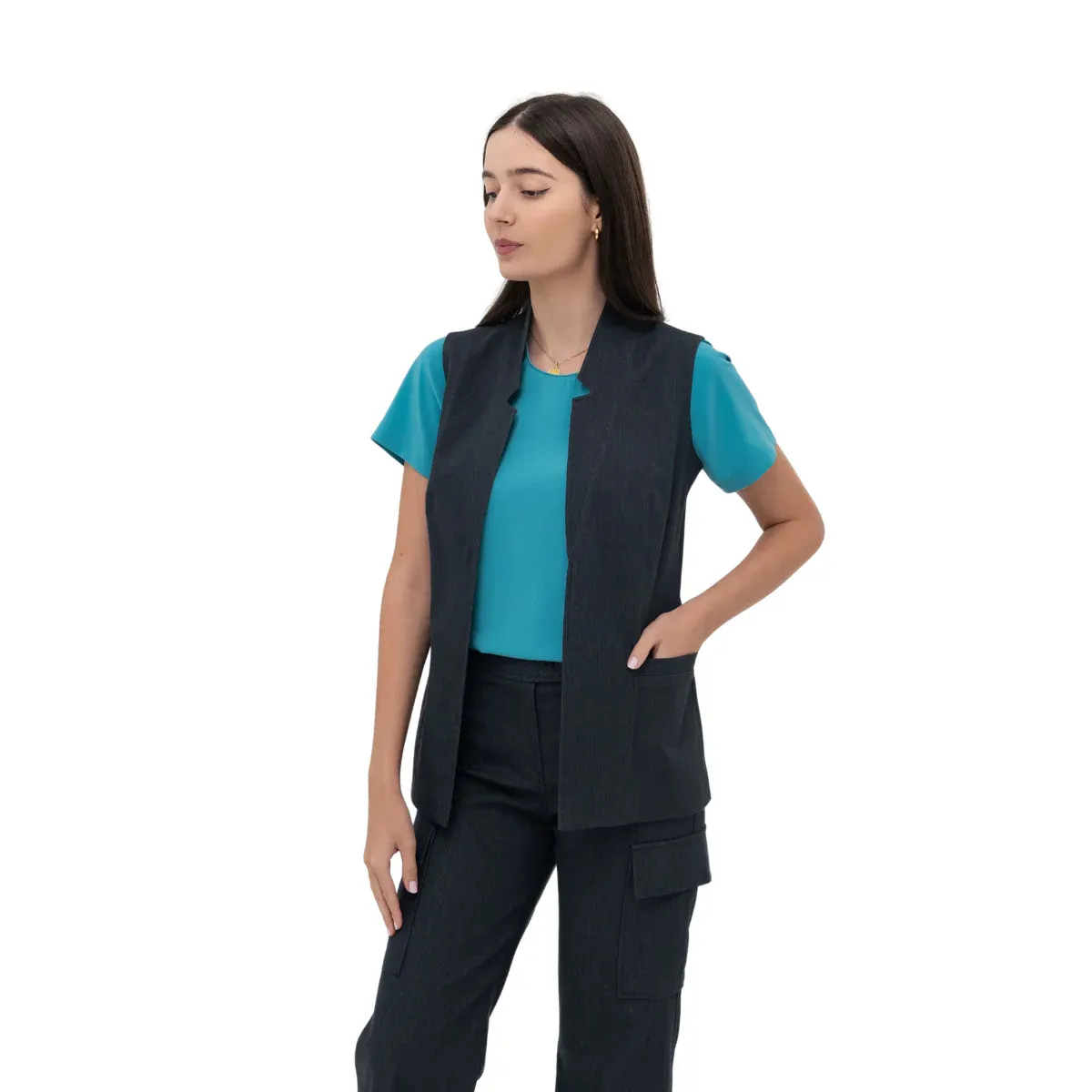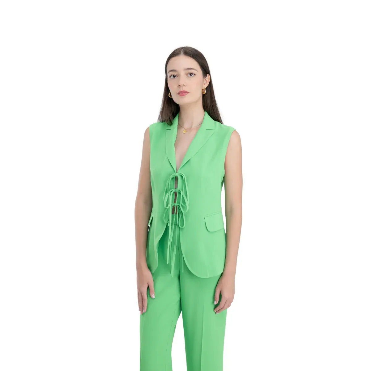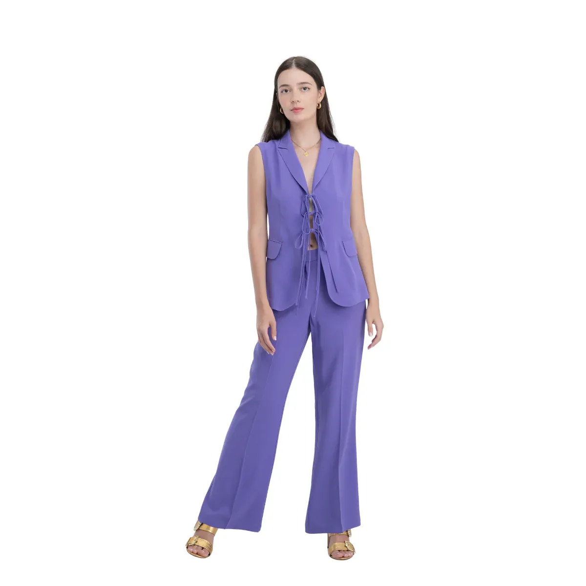 CHAQUETA SIN MANGAS ACORDONADA AL FRENTE LILA LISO 100% POLYESTER