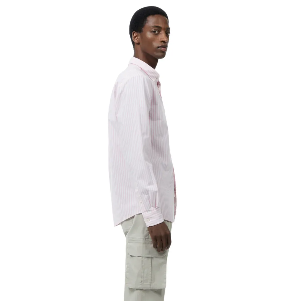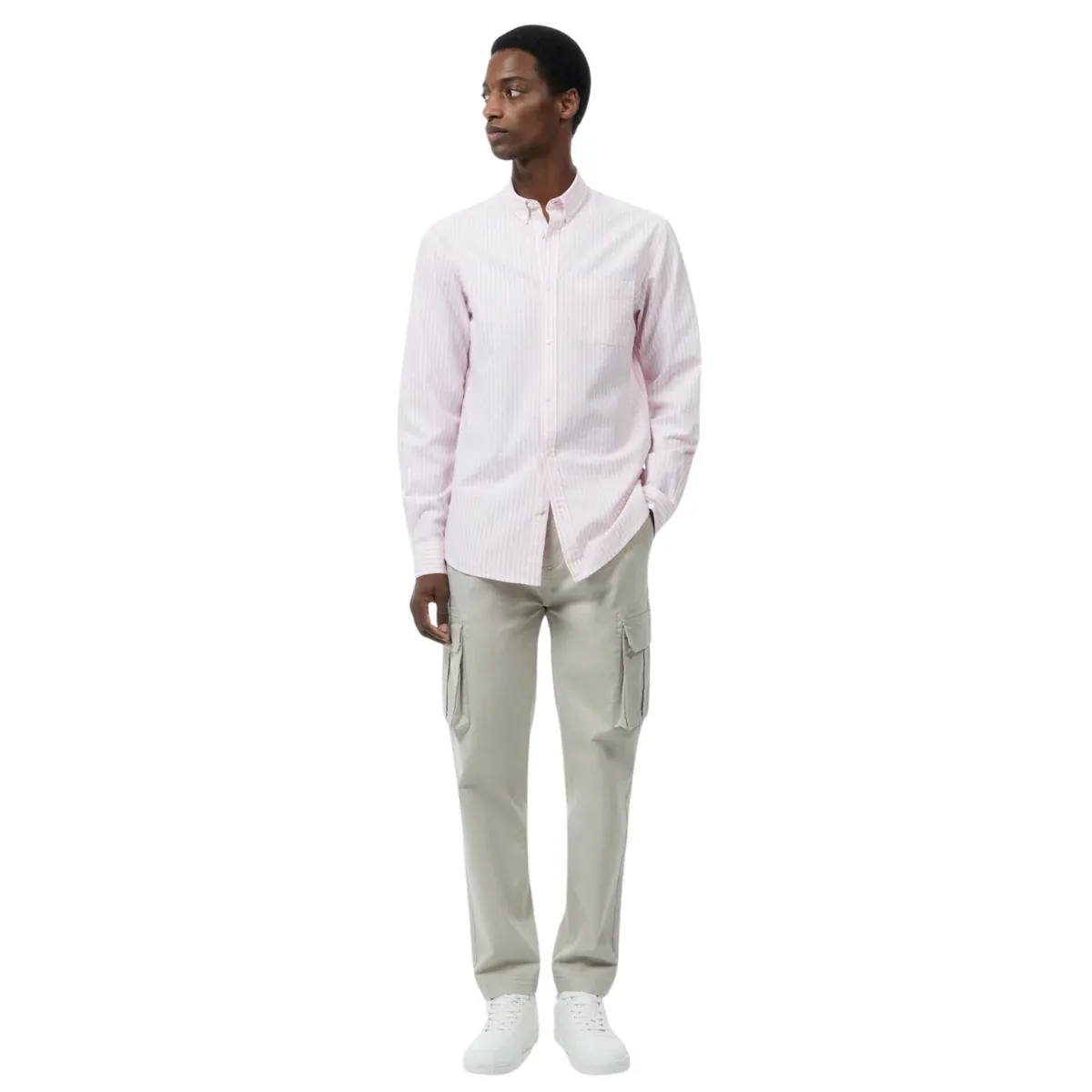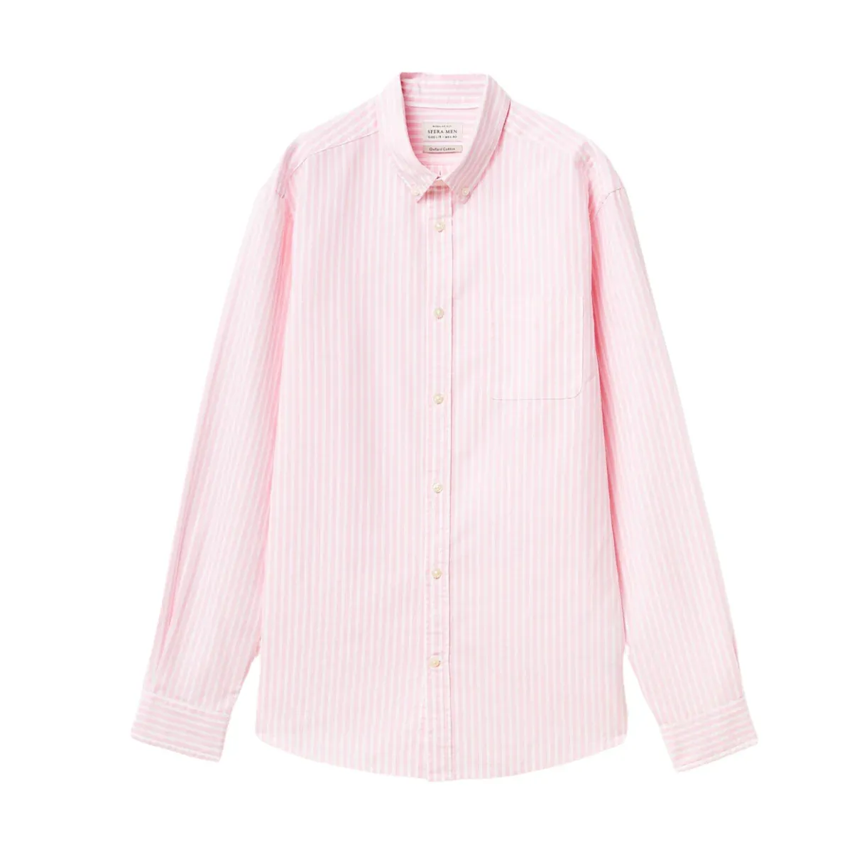 Camisa Oxford de rayas con manga larga. Lo que la hace única es su composición de algodón 100%, lo que garantiza una prenda suave, cómoda y duradera.