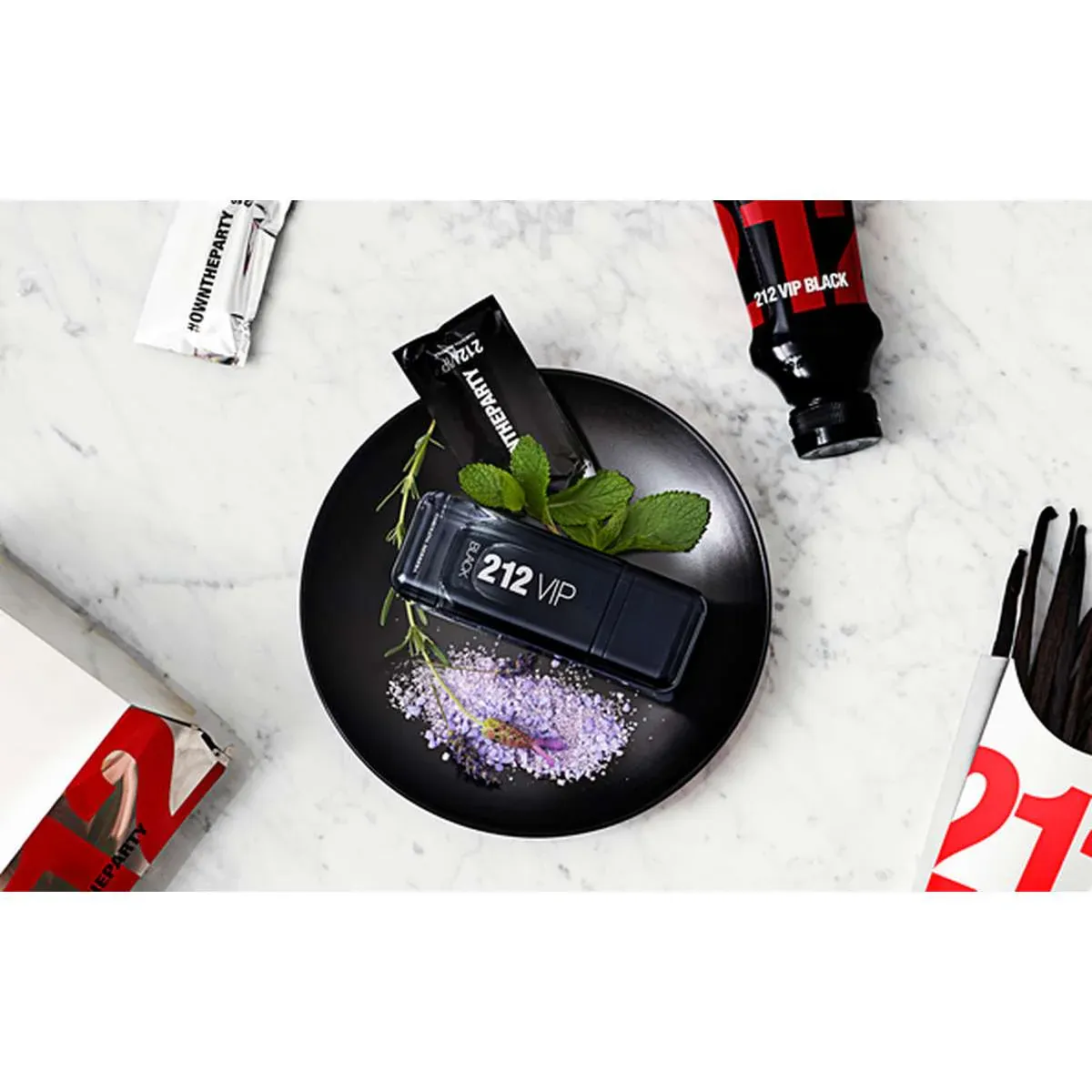 Una nueva definición de Increíble, 212 Vip Black es una explosiva fragancia picante, creada para desafiar, inspirar y ser el alma de la fiesta. Es para él! Para animar su noche con energía y picardía. 212 Vip Black hará que sea el centro de atención; todas las miradas se centrarán en usted. Es sensual y adictiva; un aura elegante que lo empodera para ser el alma de la fiesta. Envasada en una misteriosa botella monolítica, esta explosiva y elegante fragancia es el nuevo artículo que no les puede faltar a las personas de influencia modernas