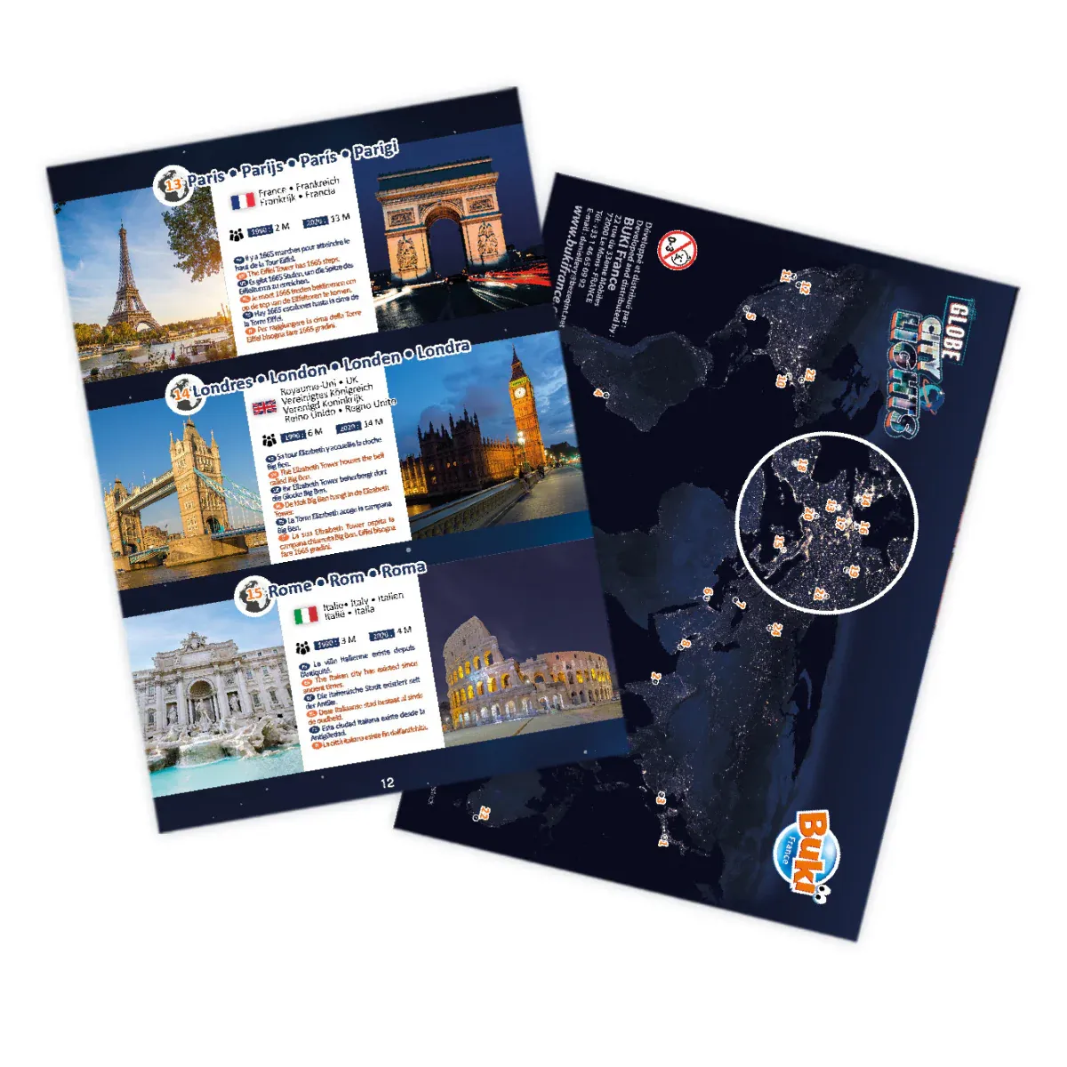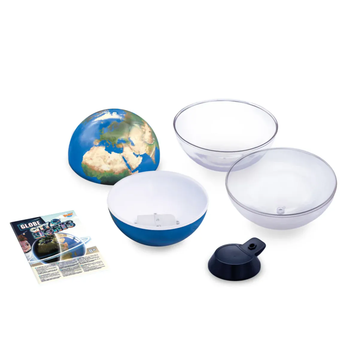 urante el día, descubre los continentes y el terreno con una vista satelital de la Tierra. En la oscuridad, el globo se ilumina y las ciudades más grandes del mundo se iluminan como si se vieran desde el espacio. Tiene un diámetro de 20cm. Colóquelo en su base para reproducir la inclinación real de la Tierra.