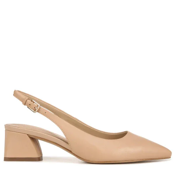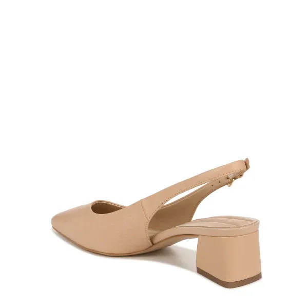 Con un moderno y angular tacón bloque, este zapato slingback de punta afilada desprende un atractivo femenino. Parte superior de cuero, gamuza, charol, tela o cuero sintético, parcialmente fabricada con materiales reciclados. Forros ecológicos con comodidad suave y sostenible. Tecnología InFORMA de confort: Plantillas ergonómicas, almohadillado contorneado en puntos clave de presión y soporte excepcional. Correa en el talón con cierre de hebilla ajustable. Punta afilada. Tacón bloque envuelto de 2.17 pulgadas.