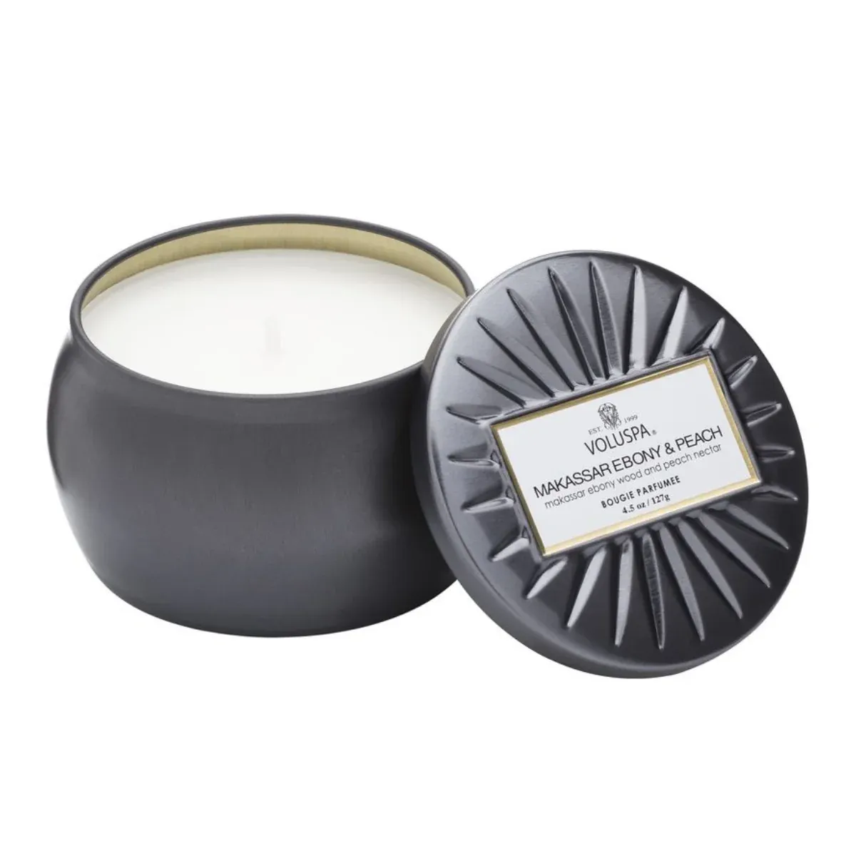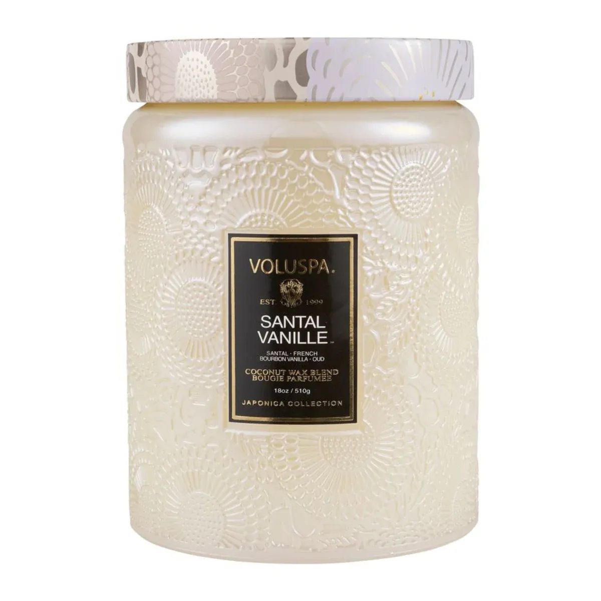 La mezcla única de cera de coco de Voluspas se vierte a mano en un recipiente de vidrio en relieve de 18 onzas y está cubierta con una tapa de metal, adornada con detalles de japónica que mantiene la vela libre de polvo cuando no está en uso. La mecha única le permite disfrutar de la fragancia durante 100 horas. Nuestras velas se vierten a mano en los Estados Unidos y cuentan con nuestra mezcla patentada de cera de coco de combustión limpia y mechas 100% naturales. Nuestros productos están libres de ftalatos, pesticidas, parabenos y sulfatos y nunca se prueban en animales. Recicla este éxito de ventas y conviértelo en un recuerdo después de la última quema.