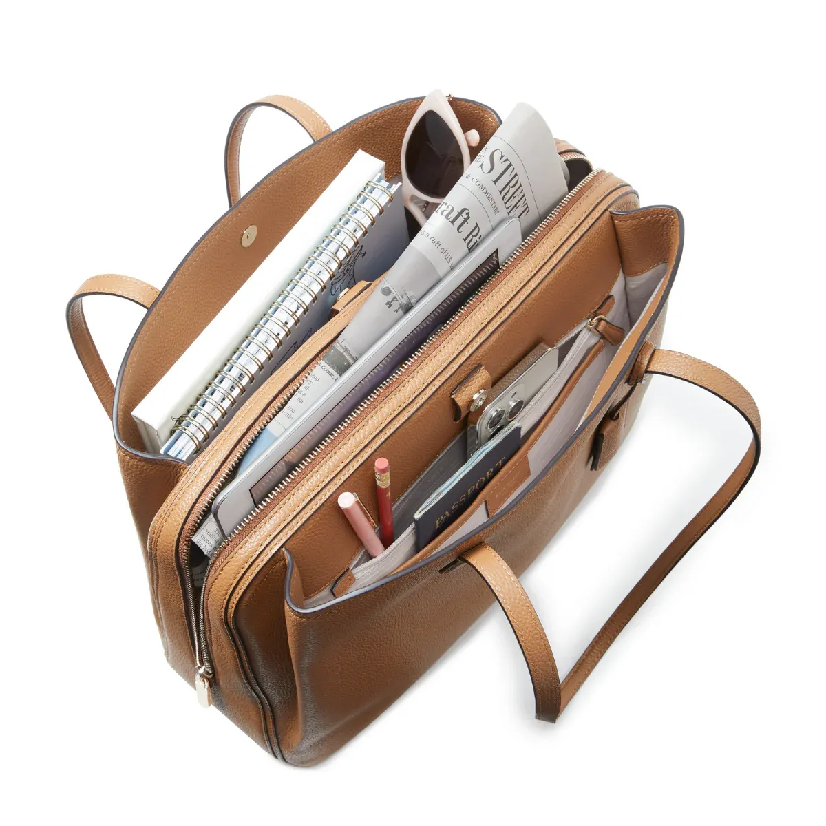 Confeccionado en cuero granulado duradero, este bolso de trabajo cuentacon cierre de cremallero, 3 compartimientos con bolsillos, uno de ellos es un compartimiento acolchado para computadora portatil de 13».