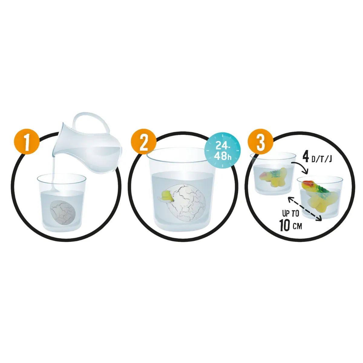 Un huevo que sumergir en agua para que eclosione y para crecer un pequeño dinosaurio La caja contiene 1 huevo que include un dinosaurio aleatorio 6 modelos para coleccionar: triceratops, tiranosaurio, braquiosaurio, espinosaurio, estegosaurio y anquilosaurio Instrucciones incluidas A partir de los 4 años
