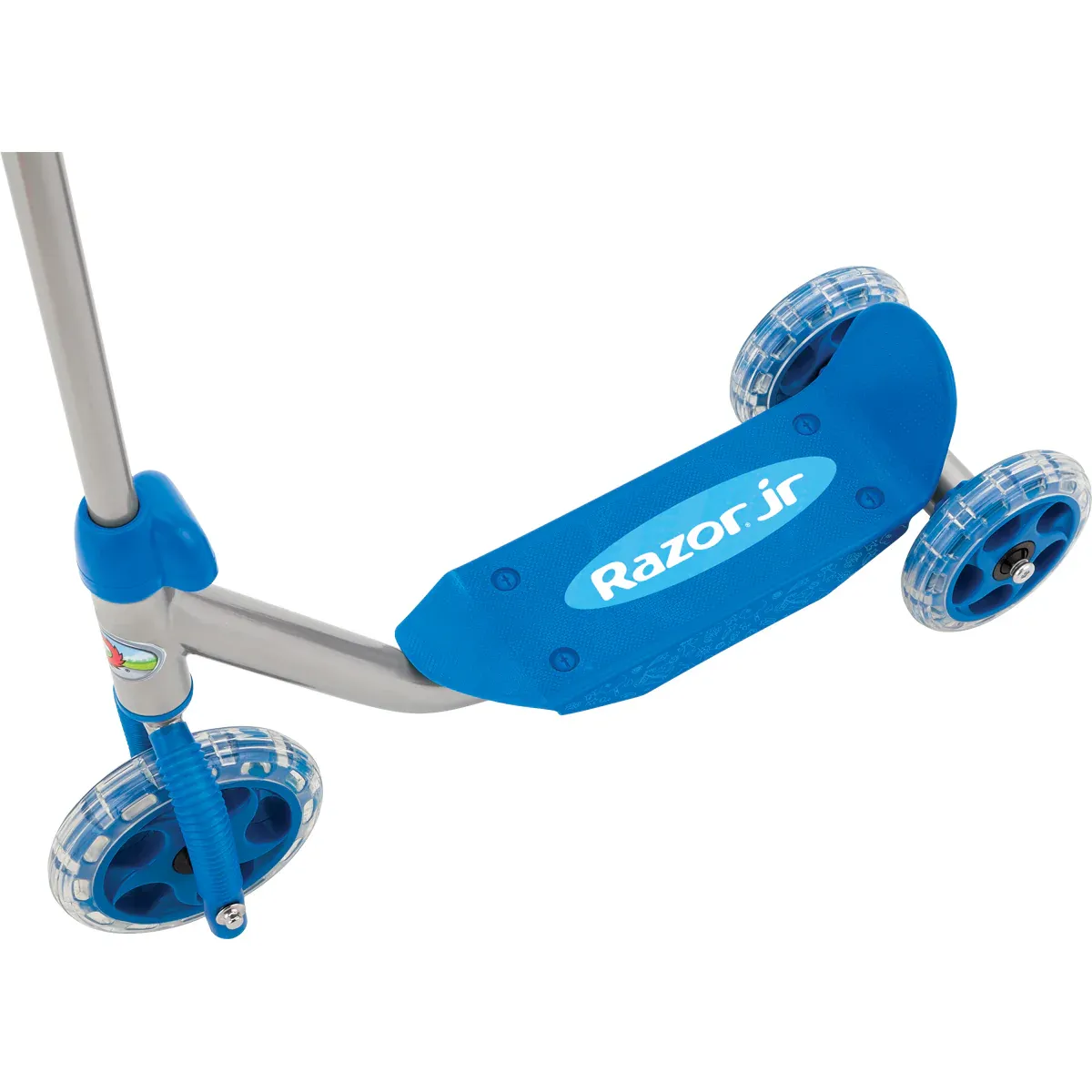 Finalmente, los pequeños tienen un montable de Razor para llamar propio. El diseño del Razor Jr. Lil’ Kick Blue de tres ruedas hace un paseo más estable, mientras que la cubierta extra ancha antidesliz mantiene a los niños pequeños sobre sus pies.
