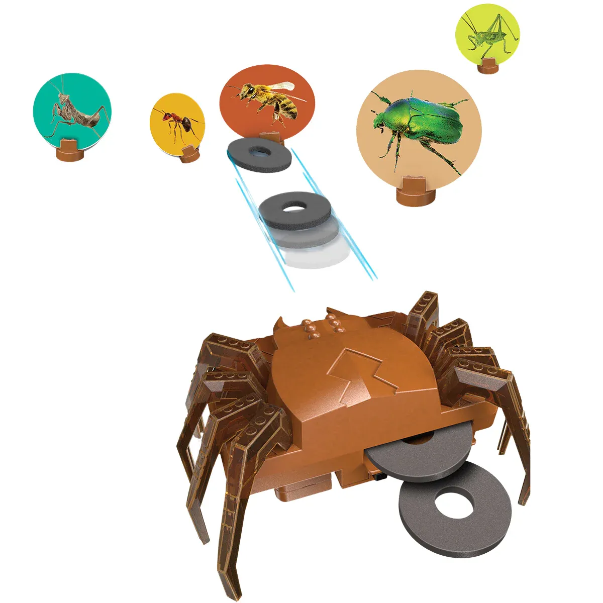 El Spider Bot Lanzador de Discos viene con objetivos en forma de insectos, lo que lo hace aún más emocionante y desafiante. Los niños pueden practicar su puntería mientras imaginan que están en la búsqueda de una araña para capturar a su presa. Coloca el disco en la pista del lanzador de discos y apunta hacia los objetivos insectos. ¡Mira cómo el disco vuela hacia su objetivo!