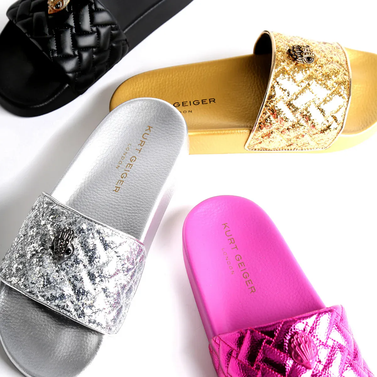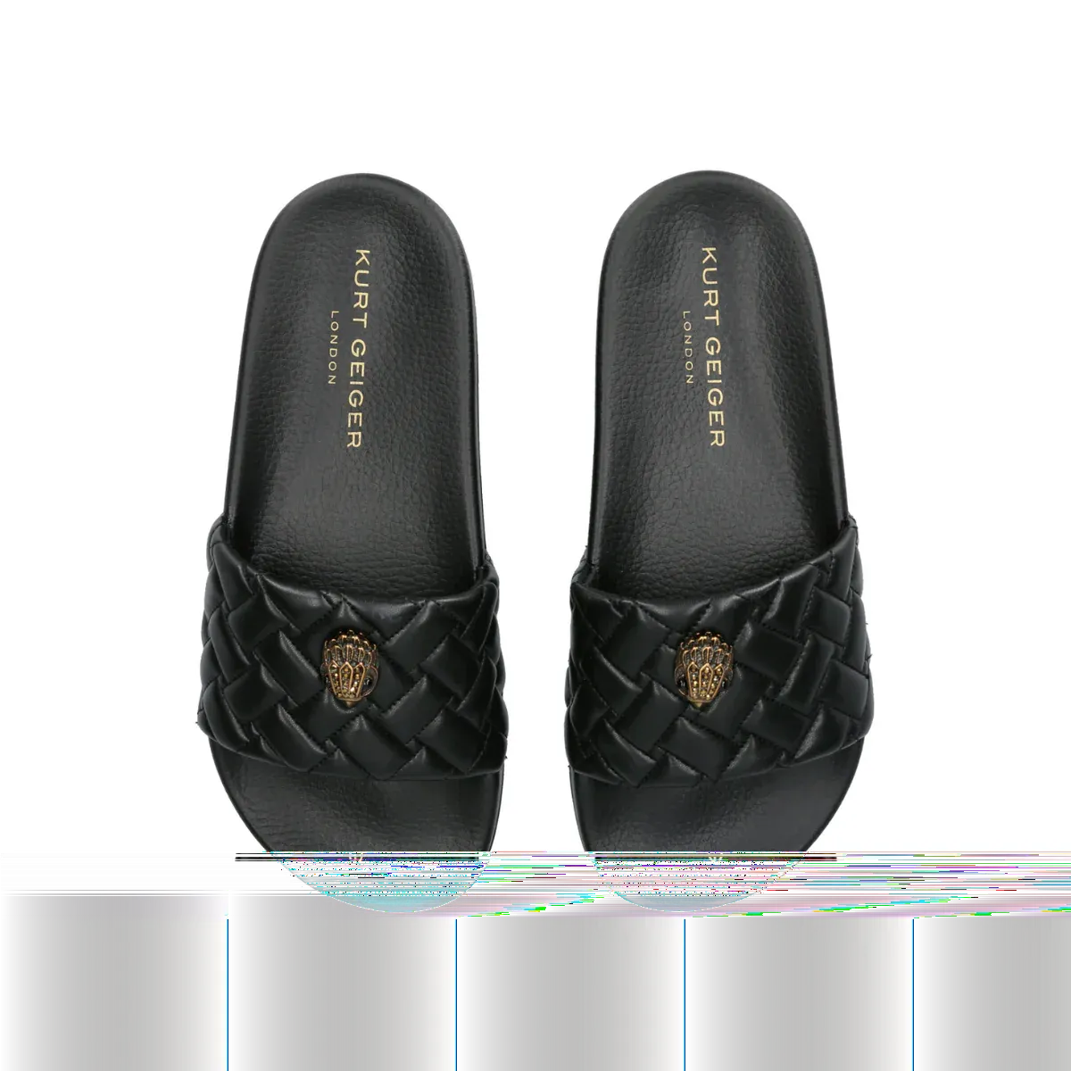 La sandalia Meena Eagle llega en un estilo negro tipo slide. La correa está acolchonada y rematada con una cabeza de águila en latón envejecido. Material: Textil. Plantilla moldeada.