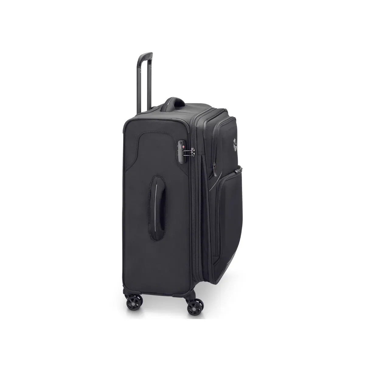 Delsey maleta optimax / 70 cm negro poliéster, cuenta con asa superior y lateral con logotipo y cuatro ruedas. 4 ruedas duraderas que le hacen extremadamente flexible y ágil, diseño espacioso que permite un organización flexible, cerradura digital TSA con código de 3 dígitos en la maleta brinda seguridad y protección para tus pertenencias personales.