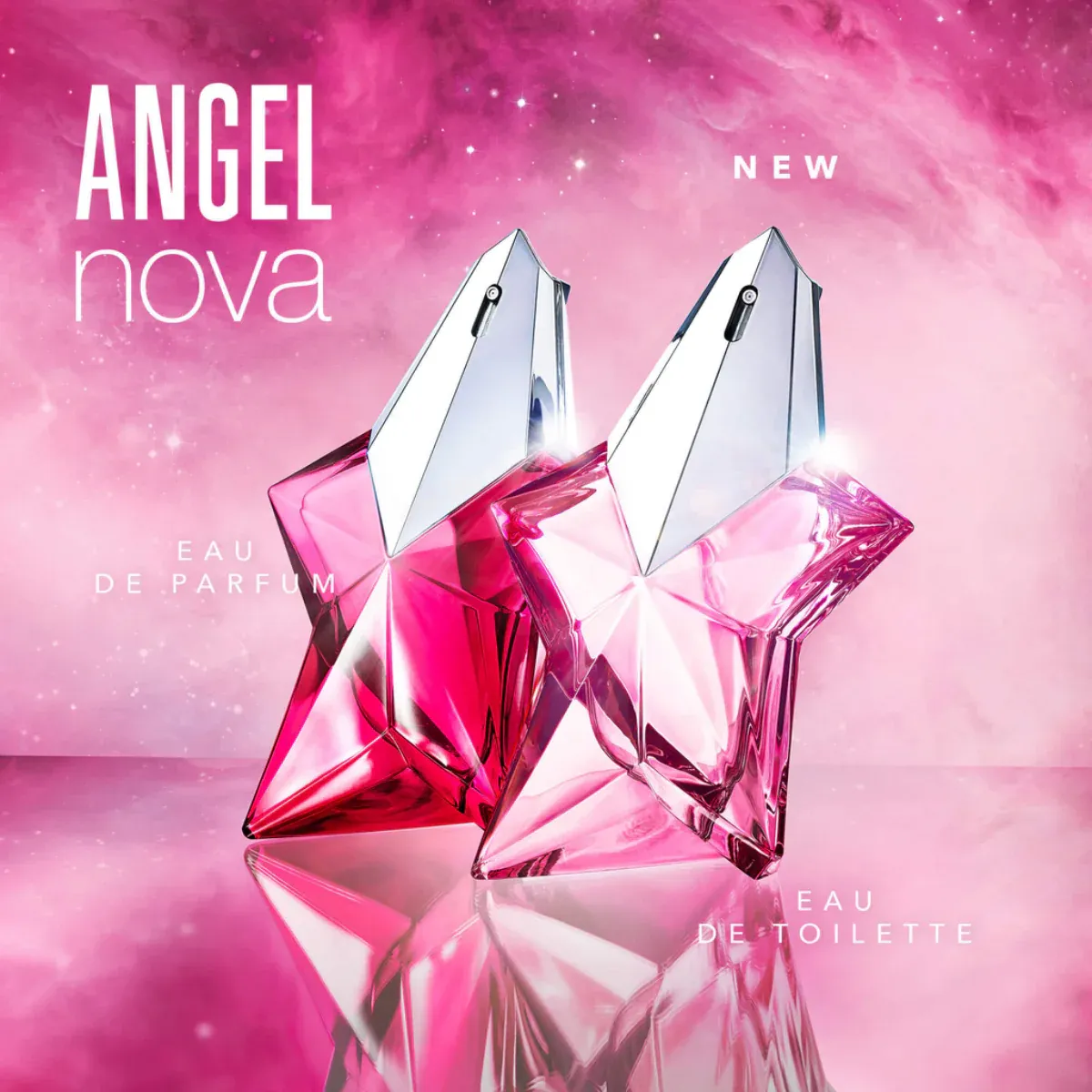 MUGLER dedica Angel Nova a las mujeres atrevidas que hacen sus sueños realidad. La mujer Angel Nova encarna la reinvención a través de la creatividad y la imaginación. Intrépida e inspiradora, resurge creando su propio mundo. Decidida, trasciende la realidad. Floreciente, vive según dictan sus sueños. Casi treinta años después de la creación de Angel, MUGLER arroja luz sobre su emblemática fragancia y la mujer que la encarna. Angel Nova es un perfume amaderado, floral y afrutado que resulta cautivador.