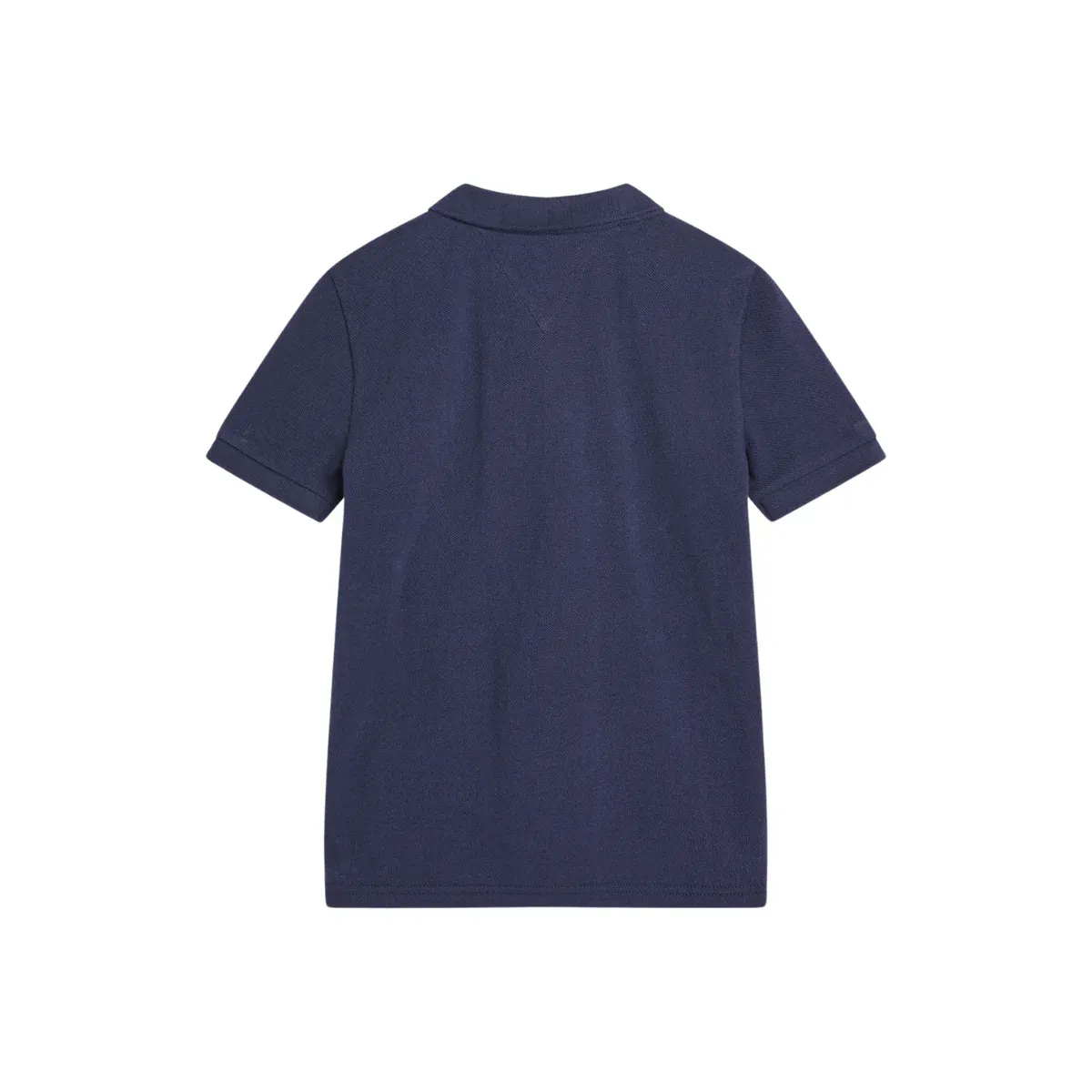 Polo para niño de Tommy Hilfiger. Confeccionado en algodón suave, presenta bloques de color azul marino, rojo y blanco y tiene la icónica bandera de la marca bordada en el pecho y ribetes con el logotipo en la parte delantera. Cuello con botones de la marca para abrochar en el cuello.