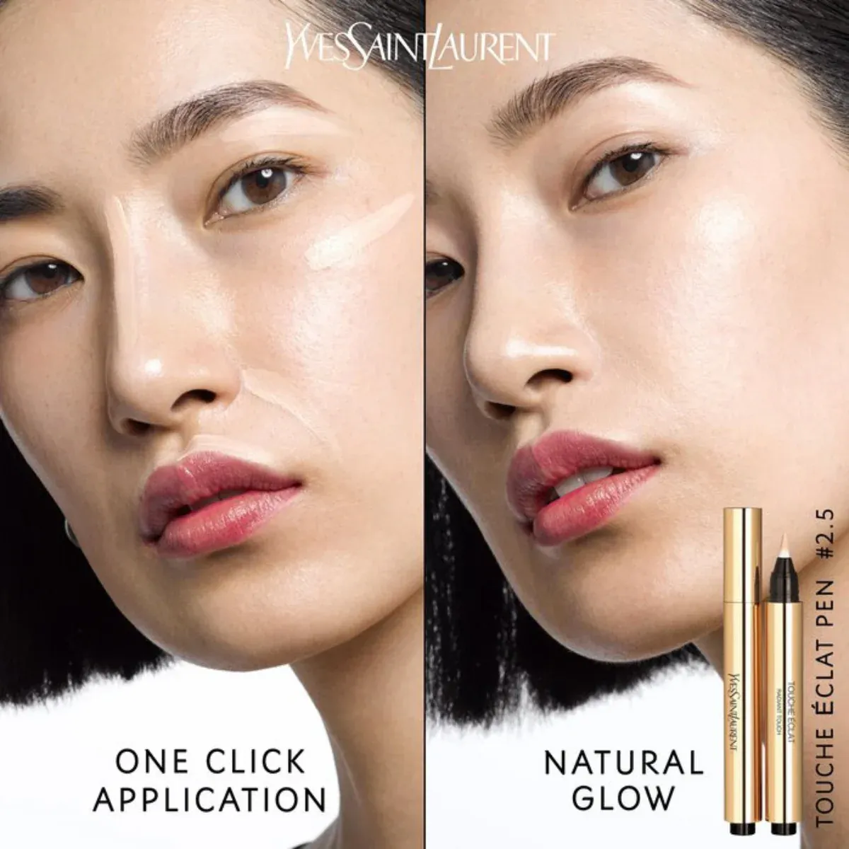 Como una varita mágica, el corrector iluminador en lápiz Touche Éclat ilumina, suaviza y perfecciona instantáneamente tu cutis con un acabado natural y luminoso. Resalte sus mejores características sin brillo ni brillantina.